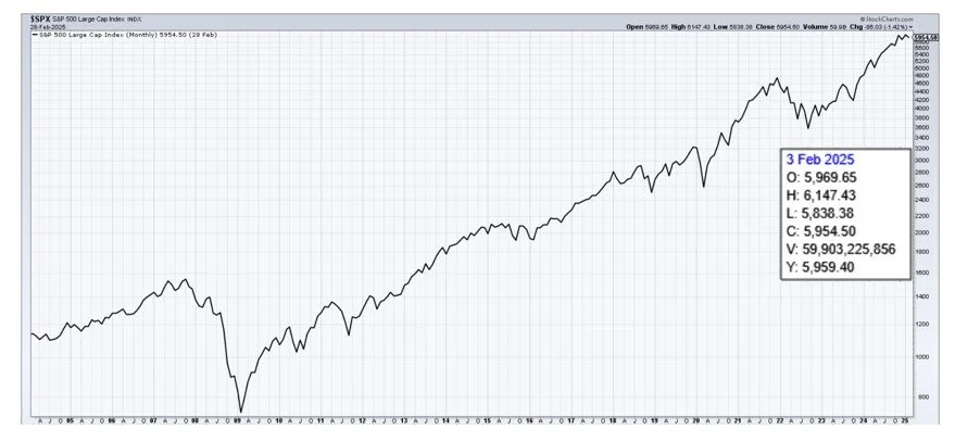 The S&P 500 closed February at 5954, after reaching a new all-time high of 6147 on February 19th. The market declined during the last two weeks of February and into March.