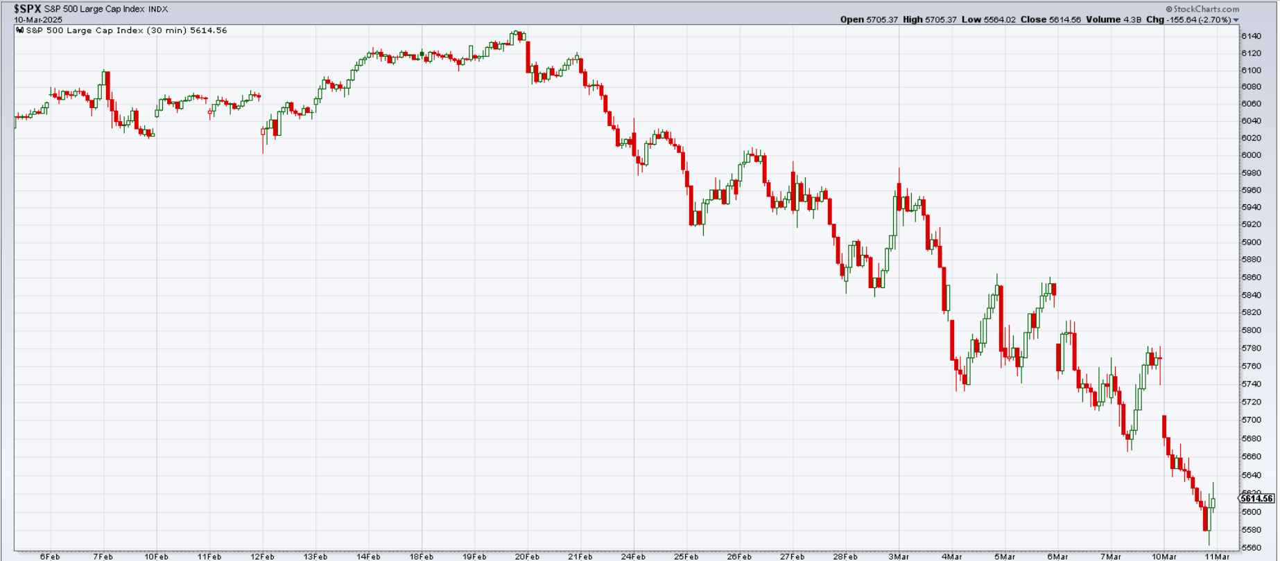 Our current drawdown would barely register on this historical chart, appearing as a small dip. However, looking at recent price action in half hour bars, it certainly feels more significant: