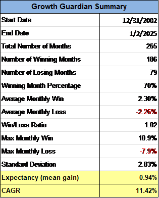 The Growth Guardian System (GGS) is designed to achieve consistent, long-term investment growth while minimizing losses during market downturns. This update reviews the GGS’s performance for December 2024 and for the entire year of 2024.